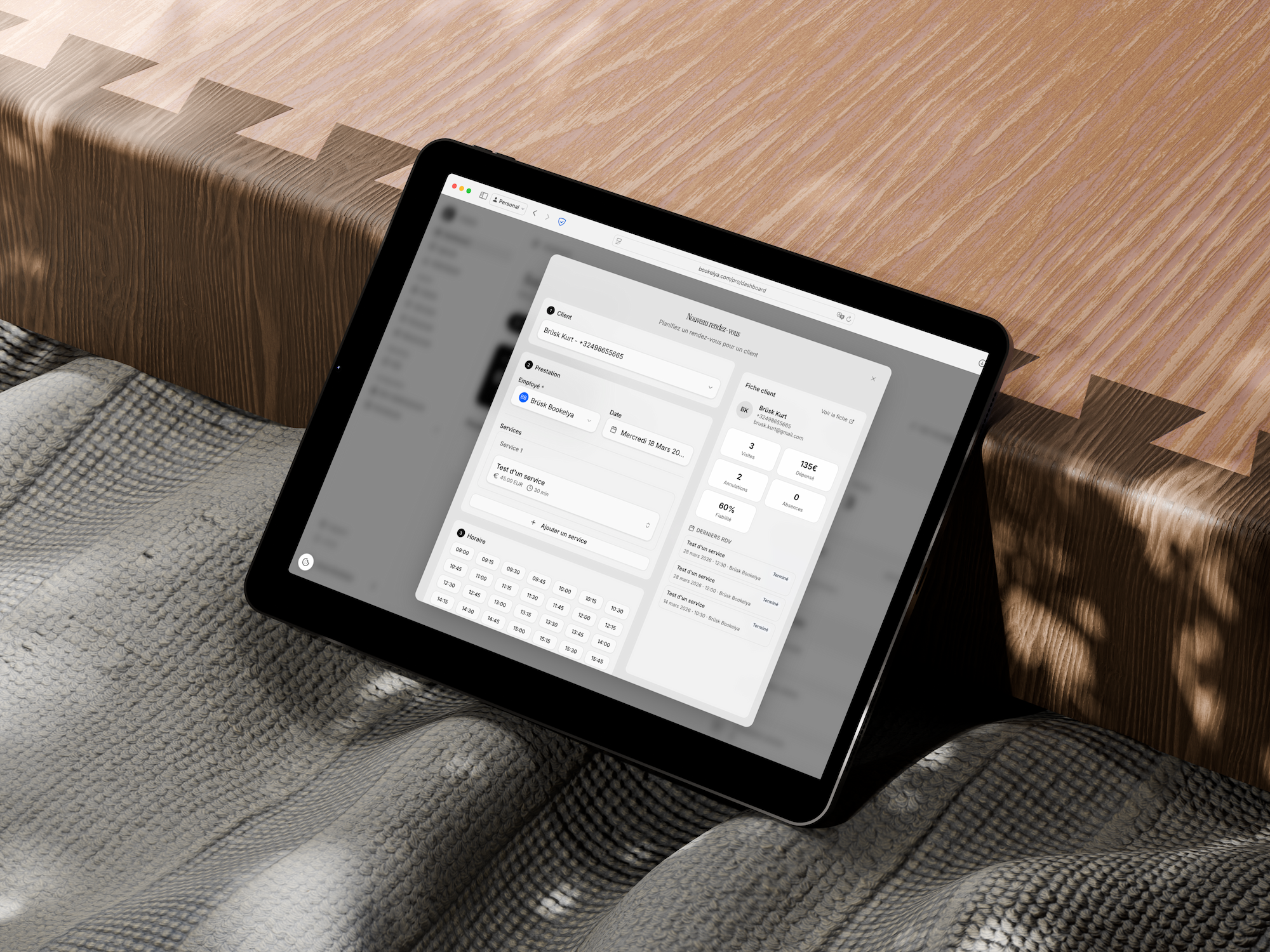 Un parcours de réservation unique centralise toutes les demandes et met à jour votre agenda automatiquement.